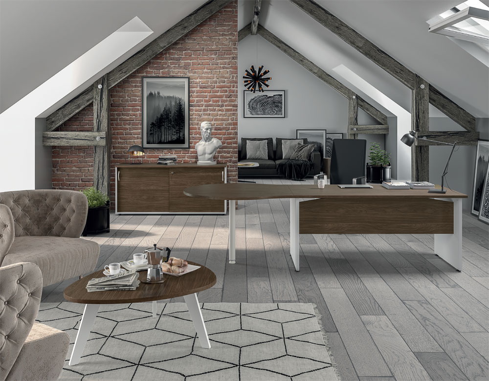 1 plan rectangulaire pieds panneaux noyer, pieds blancs