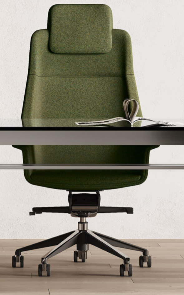 Jera est un fauteuil de direction moderne, confortable et enveloppant, proposé en deux hauteurs et trois versions.