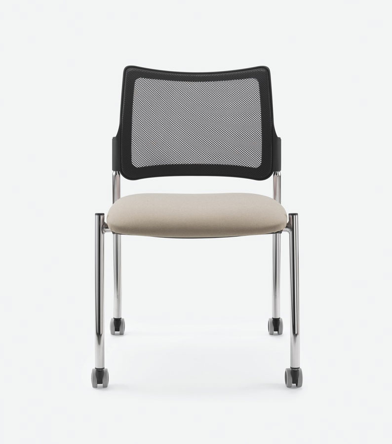 Chaise de réunion MAIA dossier résille et 4 pieds avec roulettes sols durs