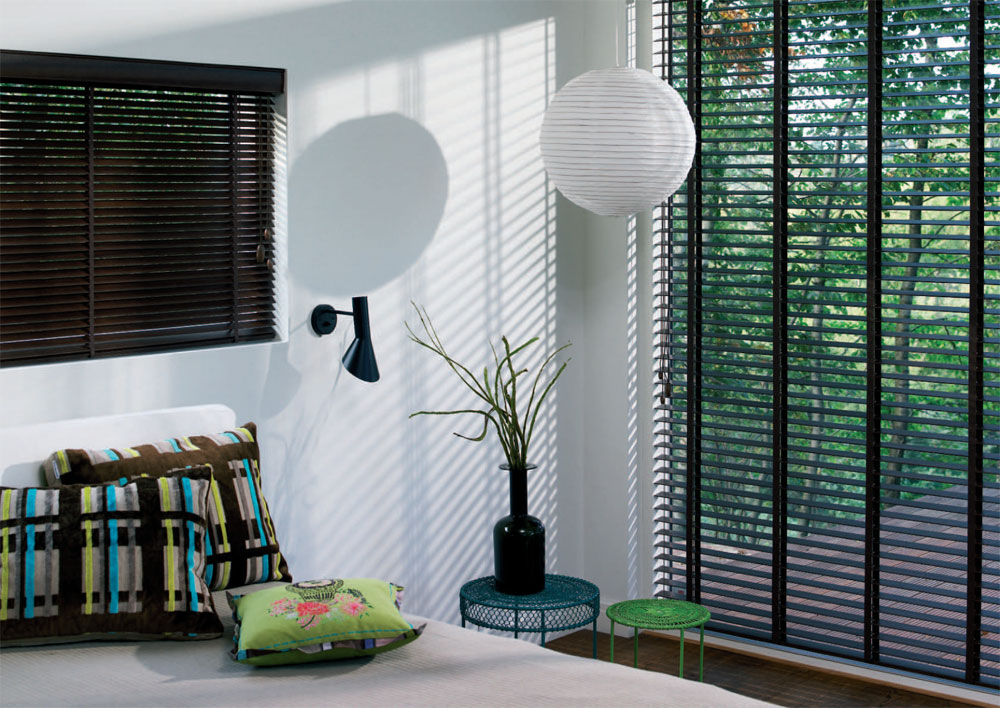 La force du graphisme des différentes essences de cette gamme renouvelle le genre et renforce l'impact décoratif du store bois.