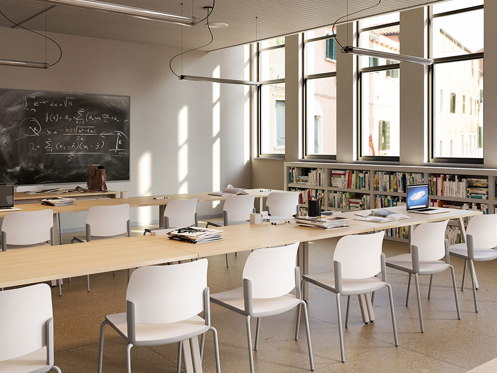 Son langage épuré et sa structure adaptable en font une solution idéale pour de nombreux contextes: des salles de classe aux salles de réunion, des espaces de coworking aux cantines, des zones de pause aux salles d’attente. Une chaise transversale qui allie identité visuelle, confort et praticité en une seule solution.